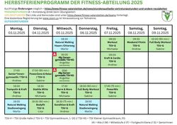 Hier kannst Du das Herbstferienprogramm der Fitnessabteilung zum Ausdrucken auf A4 herunterladen: HERBSTFERIENPROGRAMM