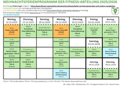 Hier kannst Du das Ferienprogramm der Fitnessabteilung zum Ausdrucken auf A4 herunterladen: WEIHNACHTSFERIENPROGRAMM