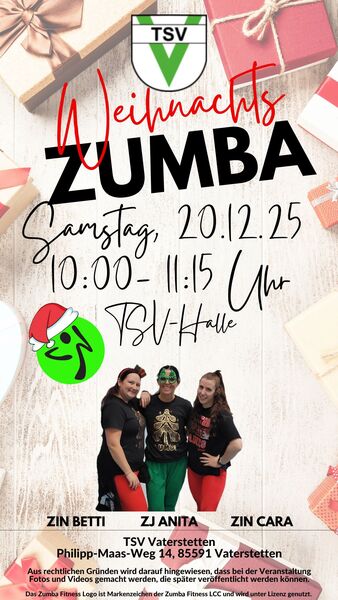 Auch in diesem Jahr findet wieder unsere traditionelle Zumba Weihnachtsstunde statt.